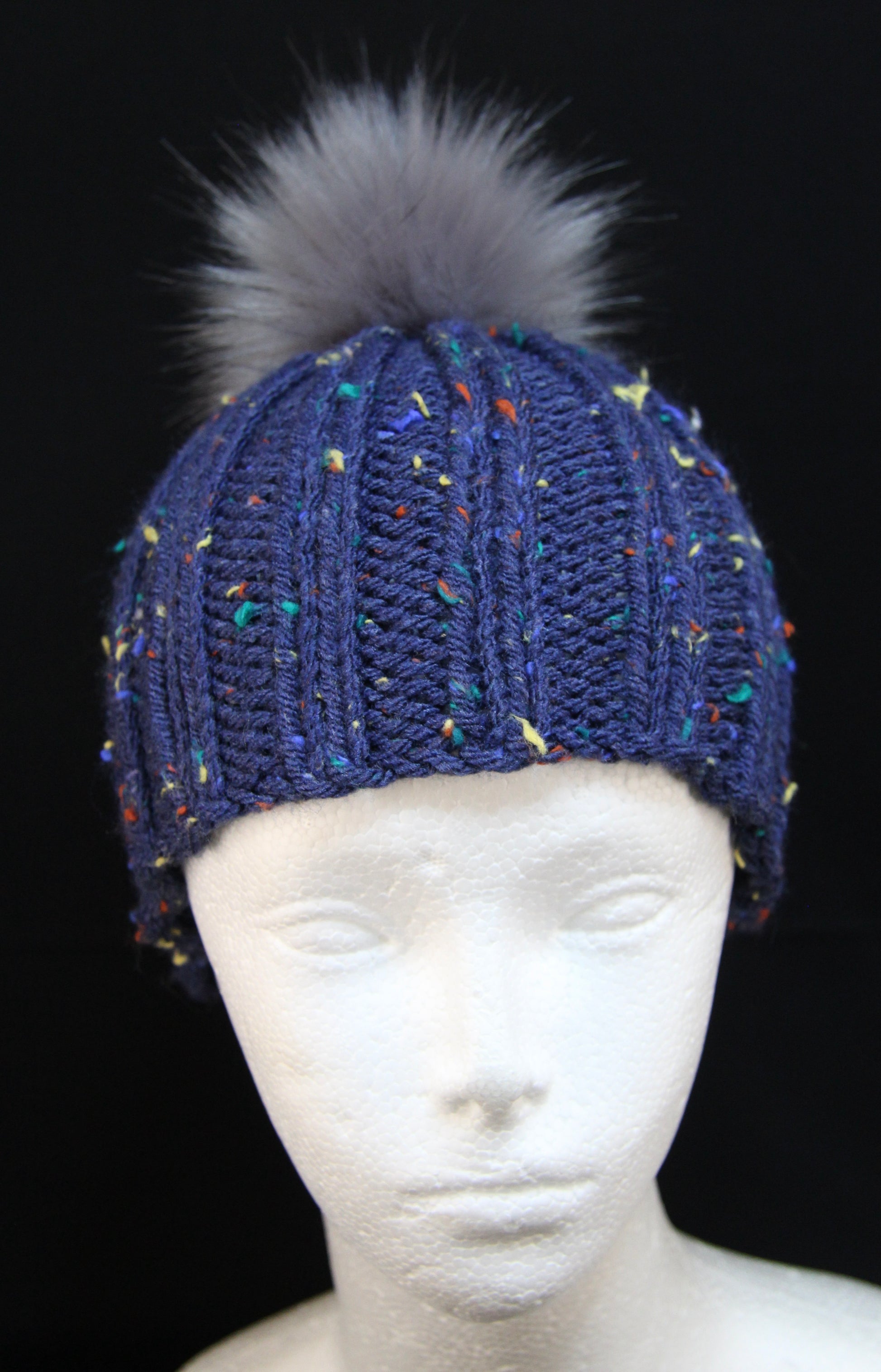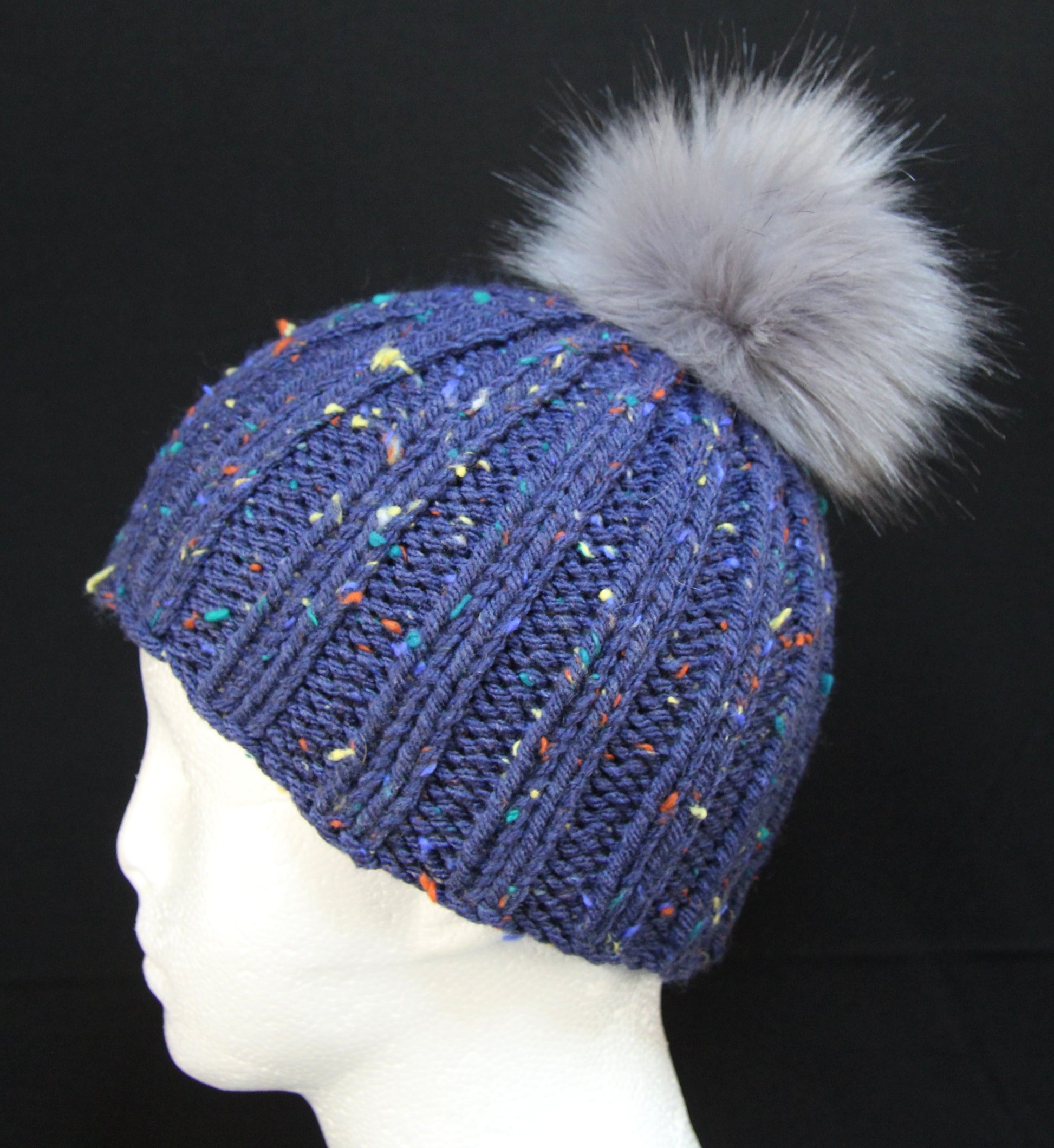 Chunky double rib hat with faux fur pom pom detail, in supersoft tweed effect yarn.