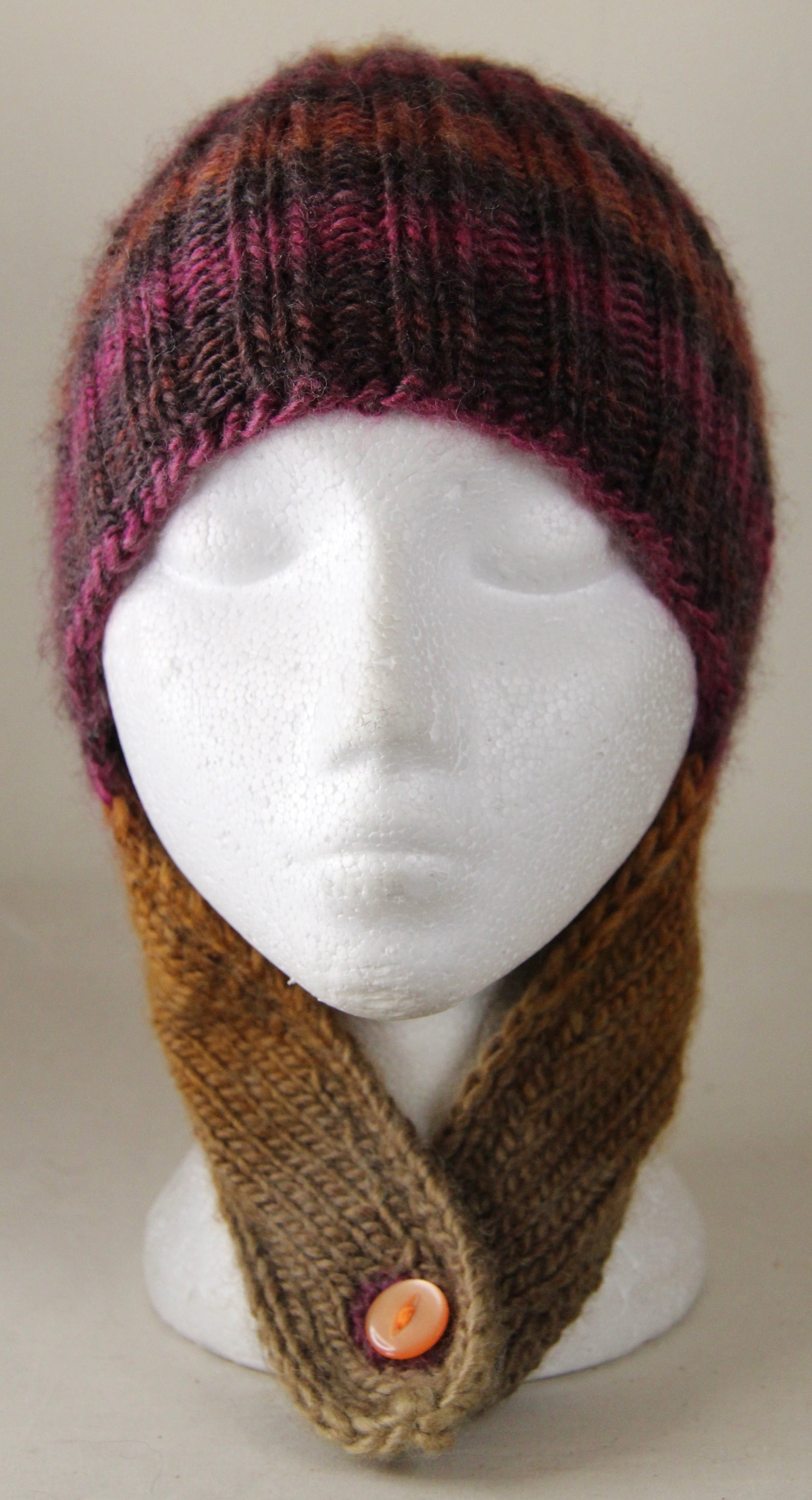 Based on Anne Grete Duvall, AGD 03 pattern, this snug beanie has a lovely feel and colour and may be wrapped and fastened at either the front or the back depending on where you are feeling the chill. The Riot Chunky wool has a beautiful softness and warmth.