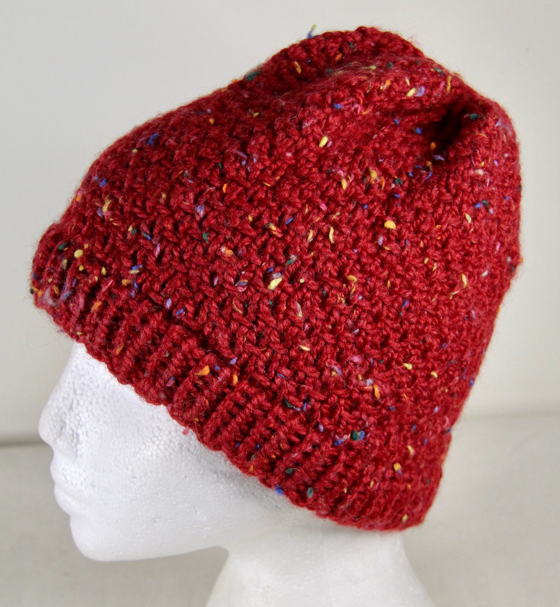 Lovely soft close fitting beanie, with rolled brim, created from the Aspenglow Hat By Lena Mathisson.